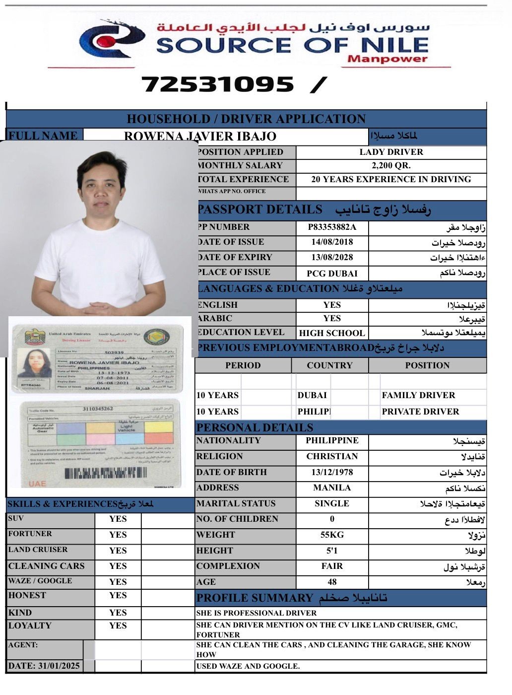 Welcome Are you looking for a driver, nurse, house manager, cleaner, nanny, secretary, professional workers for companies, security and guard personnel, foreman .... etc. Have you spent a long time looking for a maid? Have you made a great effort to find the right person? But to no avail ... Don't worry, we have the perfect solution to your problem Services…