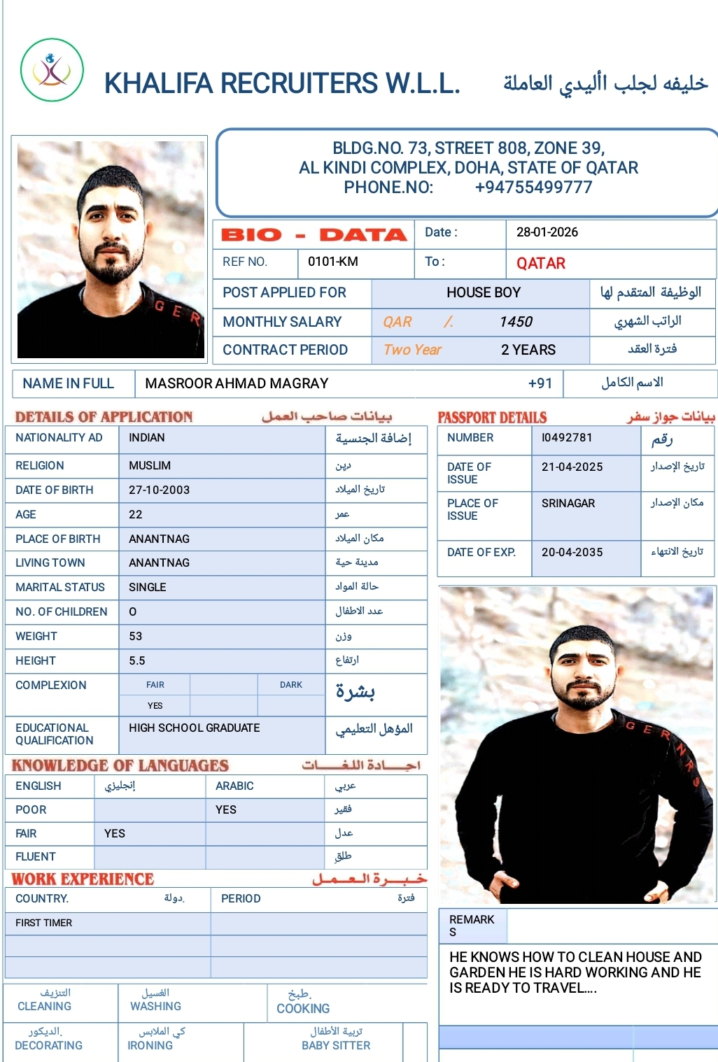 Welcome Are you looking for a driver, nurse, house manager, cleaner, nanny, secretary, professional workers for companies, security and guard personnel, foreman .... etc. Have you spent a long time looking for a maid? Have you made a great effort to find the right person? But to no avail ... Don't worry, we have the perfect solution to your problem Services…