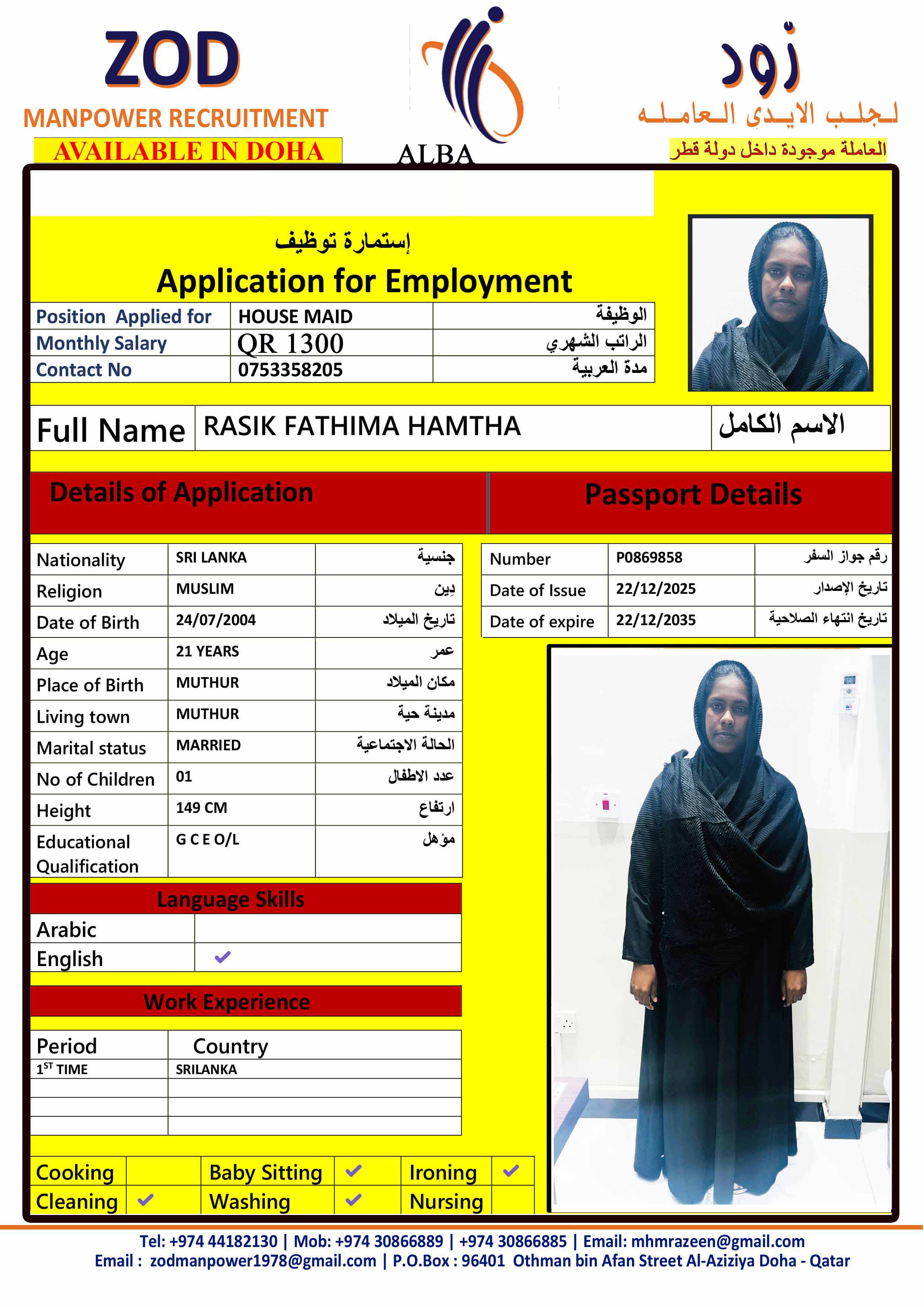 Name - English FATHIMA HAMTHA RASIK 5