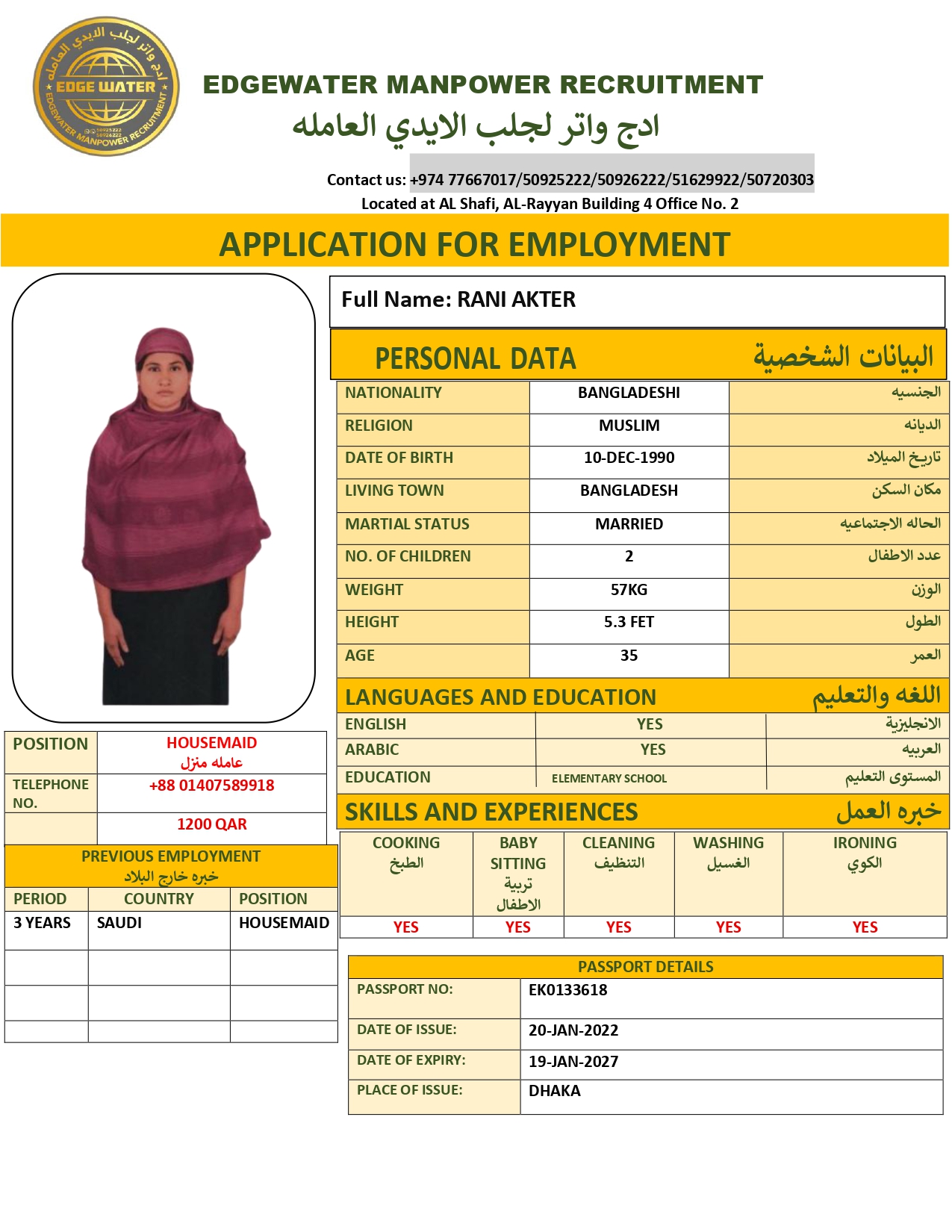 Welcome Are you looking for a driver, nurse, house manager, cleaner, nanny, secretary, professional workers for companies, security and guard personnel, foreman .... etc. Have you spent a long time looking for a maid? Have you made a great effort to find the right person? But to no avail ... Don't worry, we have the perfect solution to your problem Services…