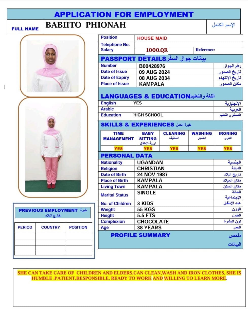 Salary 1200 QAR