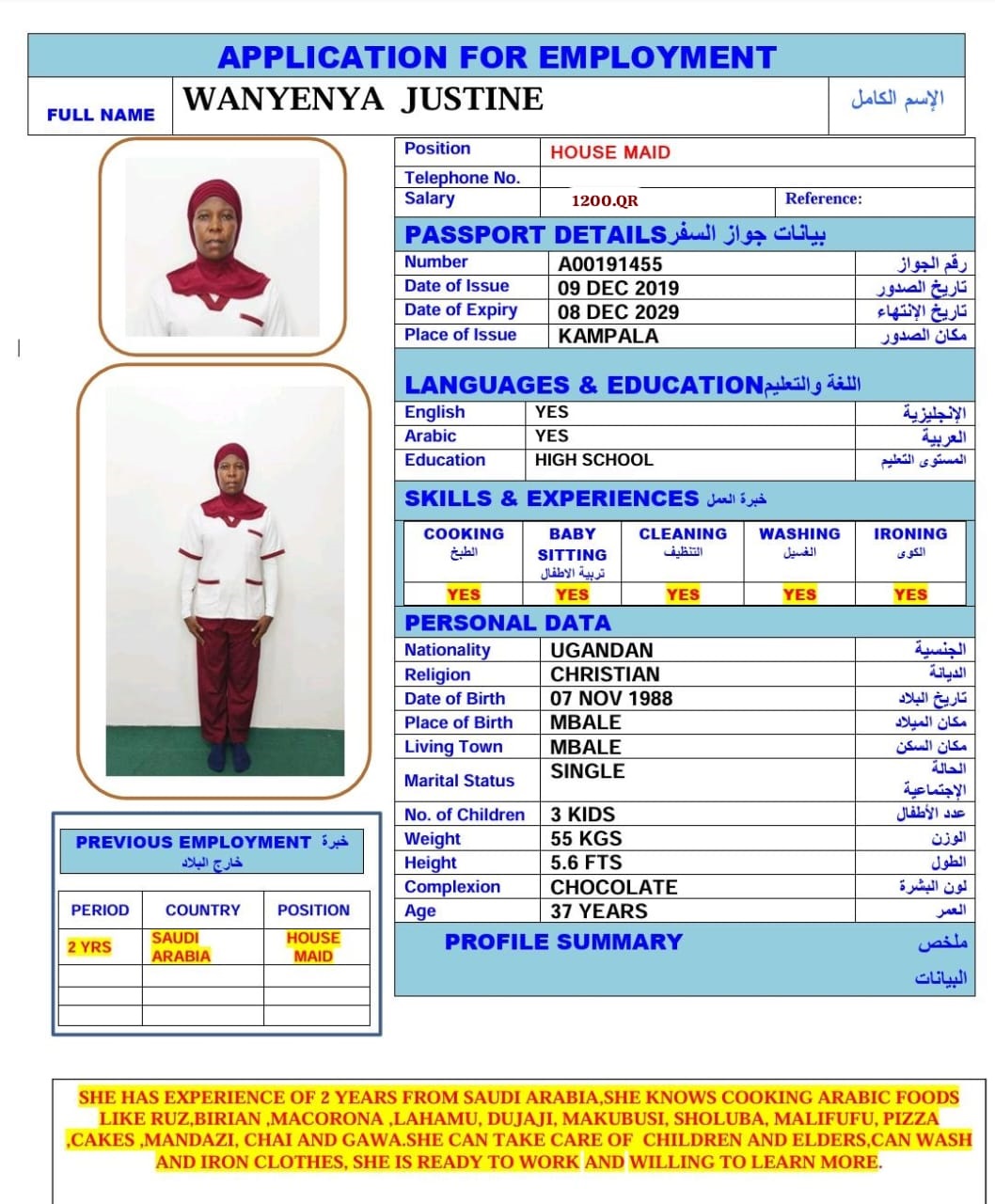 Salary 1200 QAR