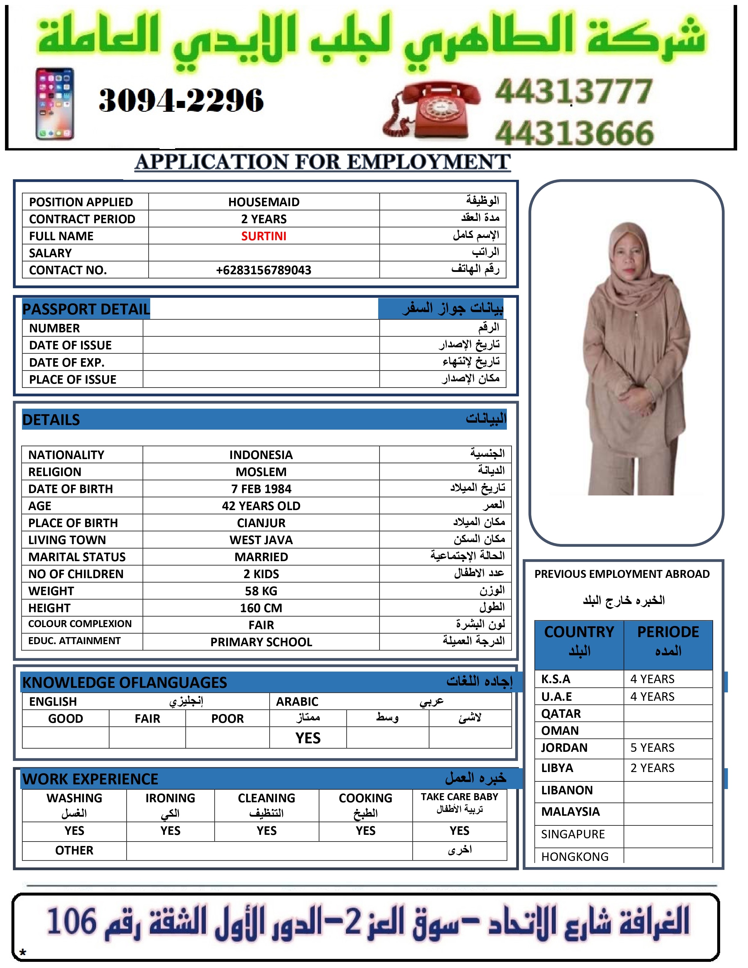 Welcome Are you looking for a driver, nurse, house manager, cleaner, nanny, secretary, professional workers for companies, security and guard personnel, foreman .... etc. Have you spent a long time looking for a maid? Have you made a great effort to find the right person? But to no avail ... Don't worry, we have the perfect solution to your problem Services…
