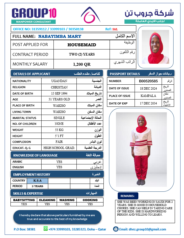 Name - English NABAYIMBA MARY