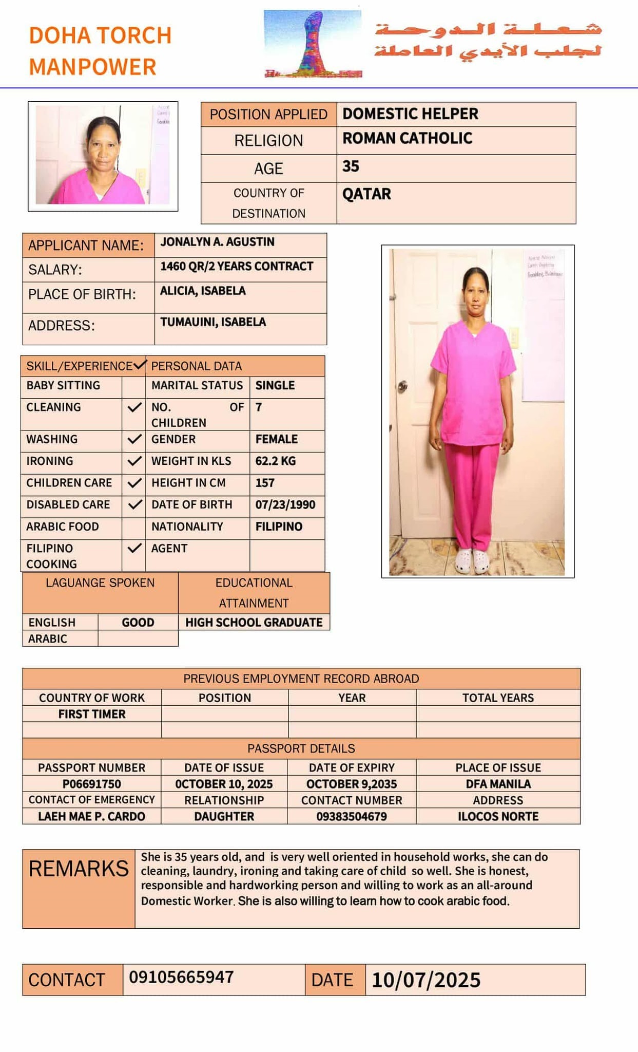 Name - English JONALYN AGUSTIN