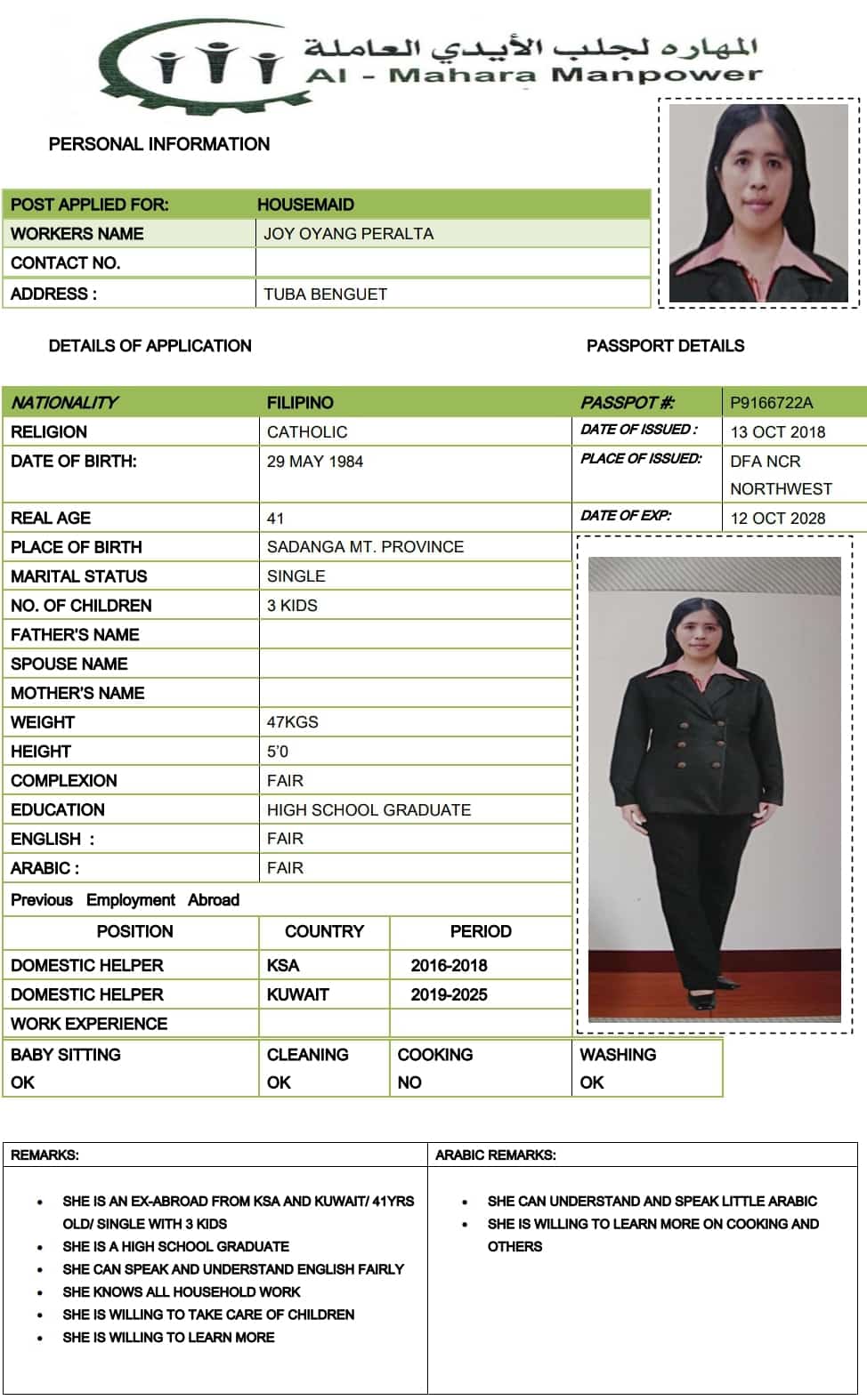 Name - English JOY OYANG PERALTA