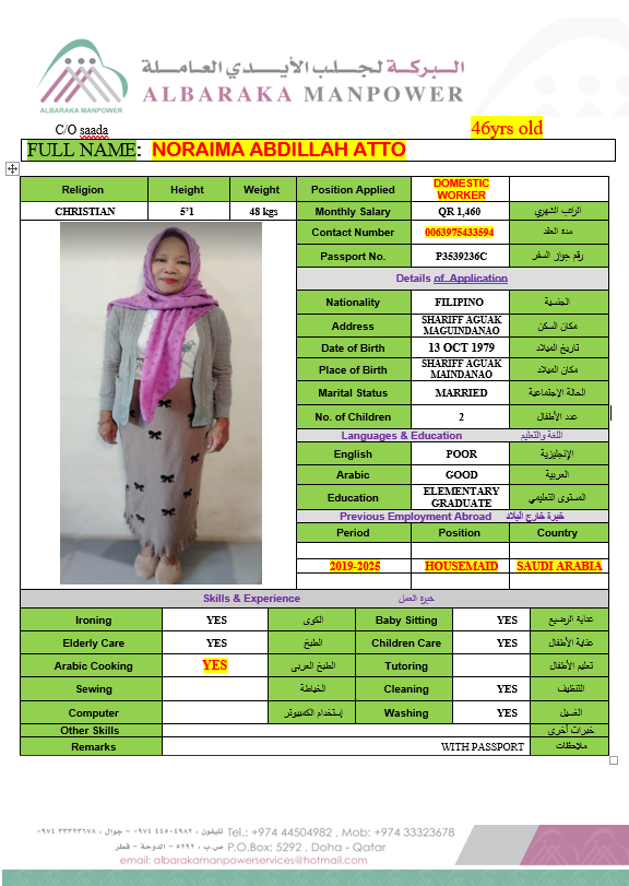 | Address | Building 53 Ground Floor Room 13, Door 02, Aziziya Doha Qatar |