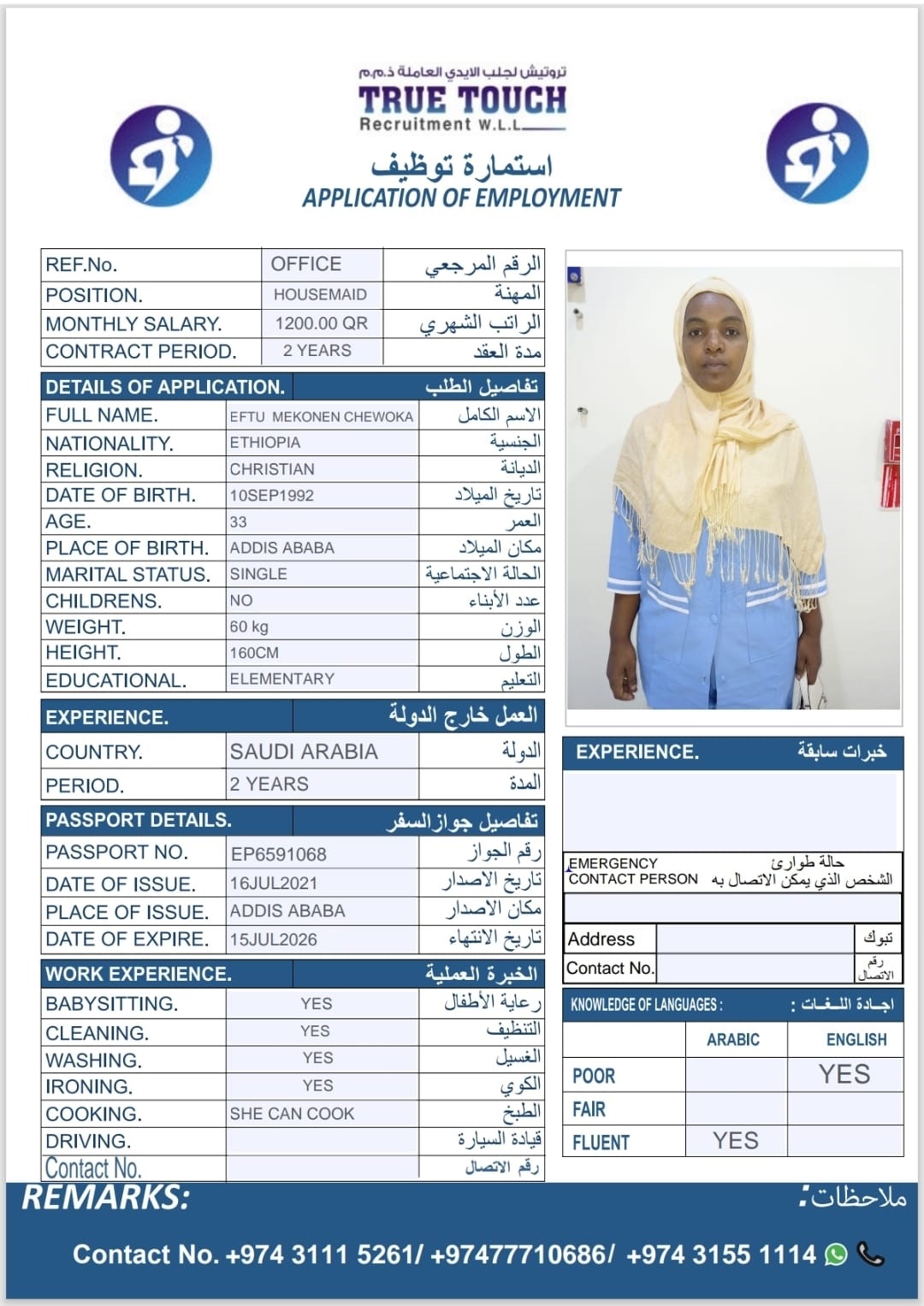| البريد الالكتروني | info.truetouchrecruitmentqa.co@gmail.com |
