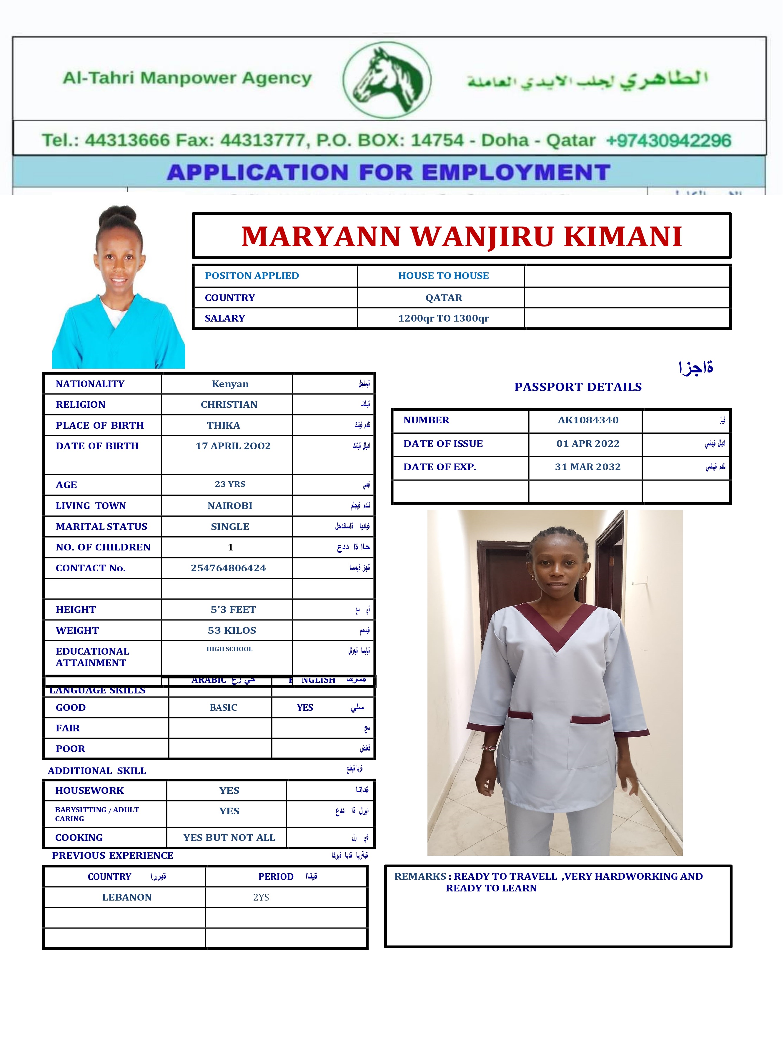 Name - English MARY ANN WANJIRU KIMANI