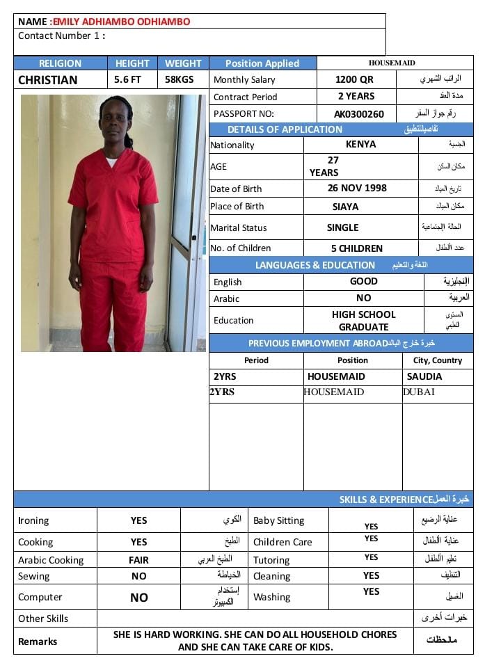 | Name | EMILY ADHIAMBO ODHIAMBO |
