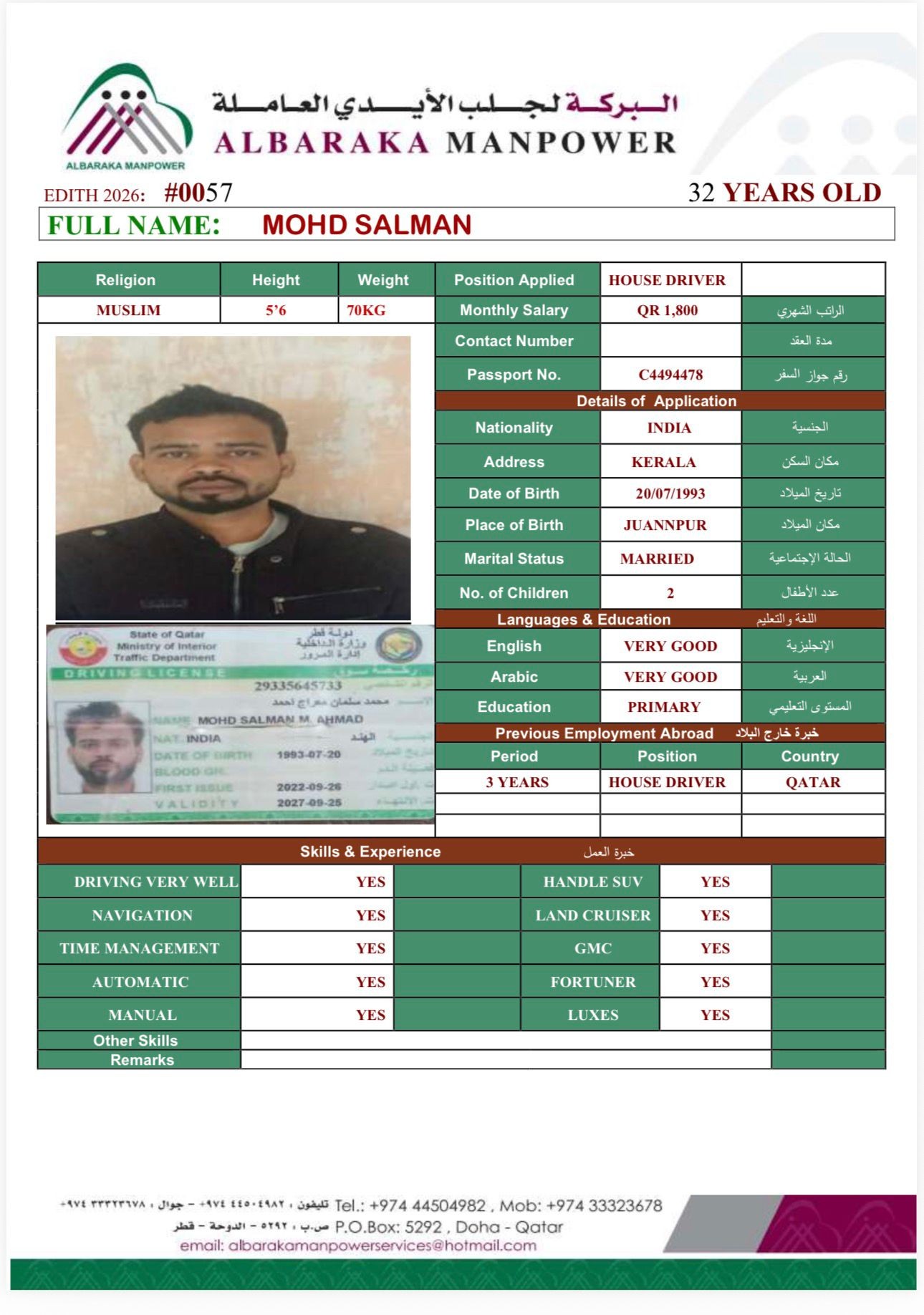 | HE KNOW HOW TO DRIVE VERY WELL, HE KNOW HOW TO USE WAZE AND GOOGLE MAP, HE CAN CLEAN THE CARS AND CLEAN THE GARAGE. | |