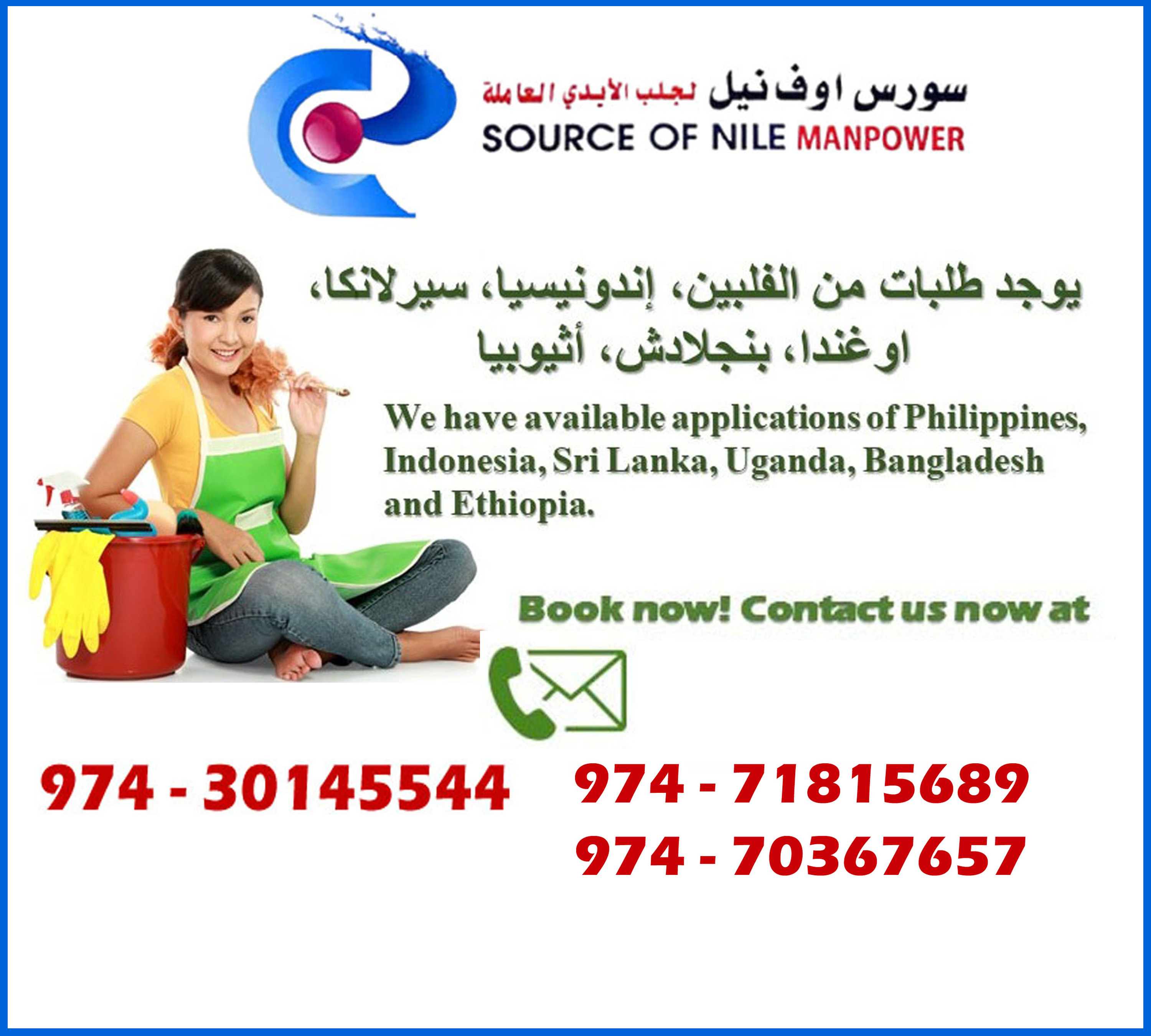 نحن نقدم الخادمات والمربيات والسائقين والممرضات وكبار السن والطهاة من الجنسيات الإندونيسية والفلبينية والهندية والبنغلاديشية والإثيوبية وأوغندا. يرجى الاتصال بنا لمزيد من التفاصيل. 70367657, 30145544, 71815689
