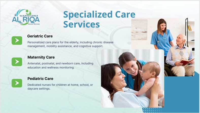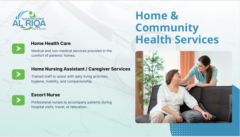 خدمات الرقة الطبية نقدم خدمات طبية وغير طبية في راحة منازل المرضى. الرعاية الصحية المنزلية طاقم طبي مدرب للمساعدة في أنشطة الحياة اليومية، والنظافة، والتنقل، والرفقة. خدمات مساعد التمريض المنزلي / مقدم الرعاية ممرضات محترفات لمرافقة المرضى أثناء زيارات المستشفى، أو السفر، أو الانتقال. رعاية الأمومة مراقبة وإدارة مرض السكري مع دعم نمط الحياة والأدوية. رعاية مرضى السكري دعم شامل ومنظم للأفراد المصابين بمرض الزهايمر وغيره من أشكال الخرف. رعاية مرضى الزهايمر رعاية فردية للأطفال والبالغين الذين يعانون من تحديات في النمو، أو السلوك، أو الجسدية. مراقبة وإدارة مرض السكري مع دعم نمط الحياة والأدوية. رعاية مرضى السكري دعم شامل ومنظم للأفراد المصابين بمرض الزهايمر وغيره من أشكال الخرف. رعاية مرضى الزهايمر رعاية فردية للأطفال والبالغين الذين يعانون من صعوبات في النمو أو السلوك أو الحركة. خدمات الرعاية المتخصصة خطط رعاية شخصية لكبار السن، تشمل إدارة الأمراض المزمنة، والمساعدة على الحركة، والدعم المعرفي. رعاية المسنين رعاية ما قبل الولادة، وما بعدها، ورعاية حديثي الولادة، بما في ذلك التعليم ومراقبة الصحة. ممرضات متخصصات لرعاية الأطفال في المنزل، أو المدرسة، أو دور الحضانة.