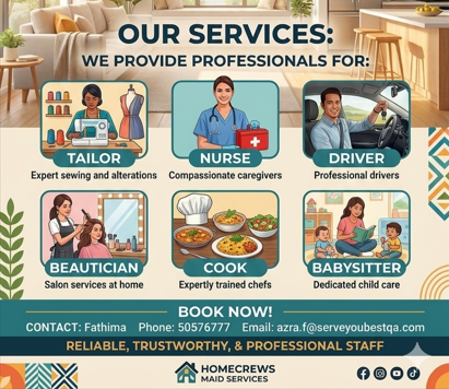 مرحبا بكم هل تبحث عن سائق ، ممرضة ، مديرة منزل ، عامل نظافة ، مربية أطفال سكرتيرة ، عمالة مهنية للشركات ، أفراد أمن وحراسة ، فورمان .... الخ هل قضيت وقتاً طويلاً في البحث عن خادمة ؟ هل بذلت جهداً كبيراً في ايجاد الشخص المناسب ؟ لكن دون جدوى ... لا عليك ، فلدينا الحل الأمثل لمشكلتك موقع الخدم – أول موقع وتطبيق الكتروني يجمع عدد كبير جداً من شركات جلب الأيدي…