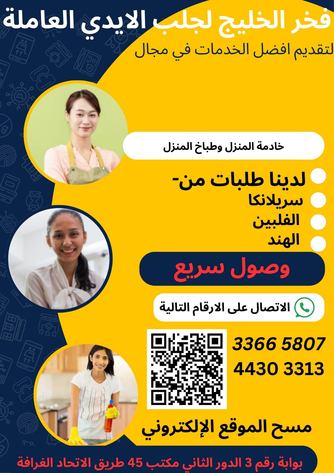 مرحبا بكم هل تبحث عن سائق ، ممرضة ، مديرة منزل ، عامل نظافة ، مربية أطفال سكرتيرة ، عمالة مهنية للشركات ، أفراد أمن وحراسة ، فورمان .... الخ هل قضيت وقتاً طويلاً في البحث عن خادمة ؟ هل بذلت جهداً كبيراً في ايجاد الشخص المناسب ؟ لكن دون جدوى ... لا عليك ، فلدينا الحل الأمثل لمشكلتك موقع الخدم – أول موقع وتطبيق الكتروني يجمع عدد كبير جداً من شركات جلب الأيدي…