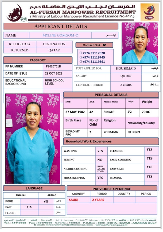 جاكلين أمبروسيو عاملة منزلية - الفلبين