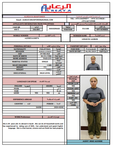 LESLIE LAURON(RETURNED) عاملة منزلية - الفلبين