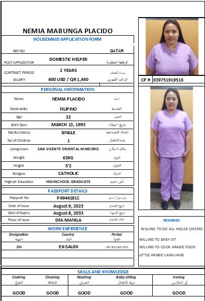 JO-AN GENOSA/PHILIPPINE HOUSEMAID طباخة - الفلبين