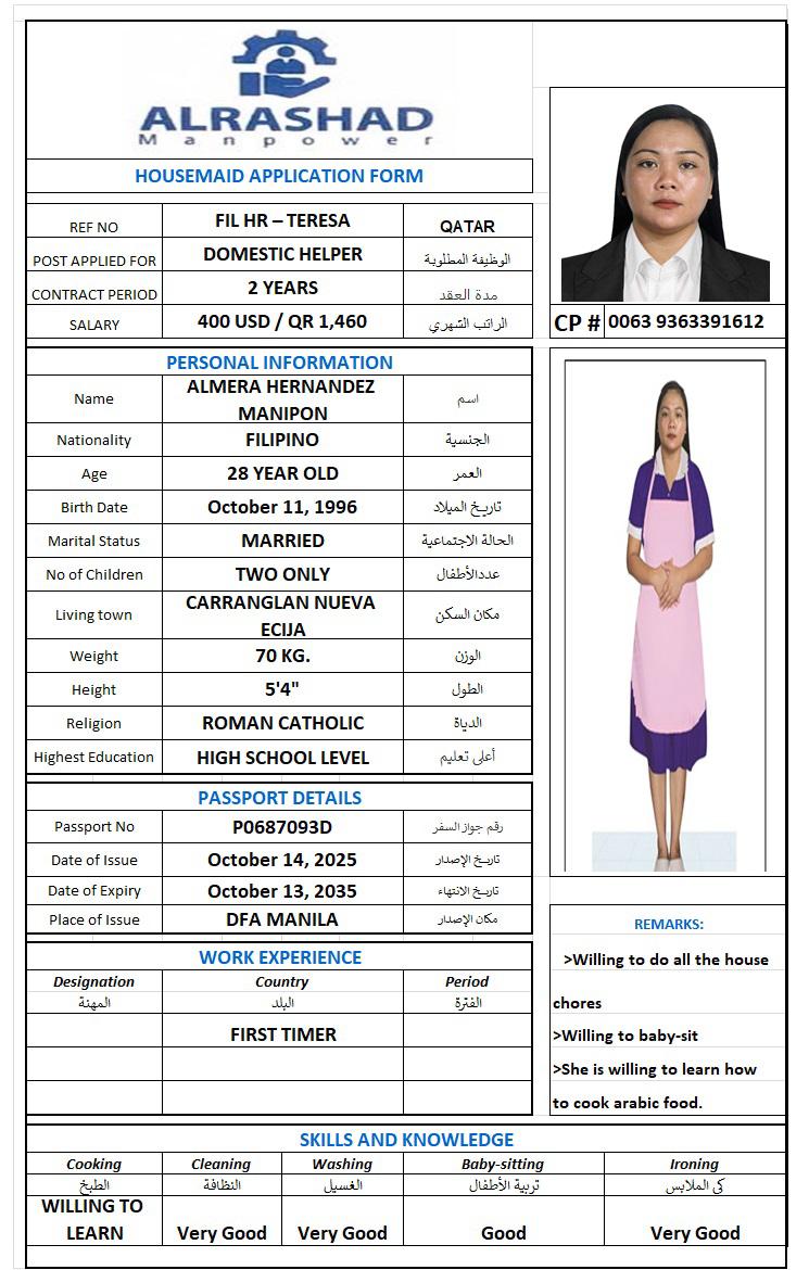 EFRELYN DELA CRUZ عاملة منزلية - الفلبين