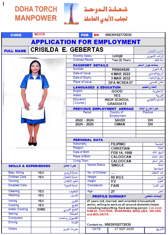 الاسم - عربي CRISILDA E GEBERTAS