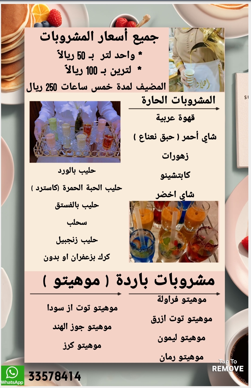 لضيافه بإداره قطريه راقية جميع أنواع المشروبات الحارة والباردة توفير مضيفات على خبره عالية لجميع المناسبات الطلب و استفسر وتساب