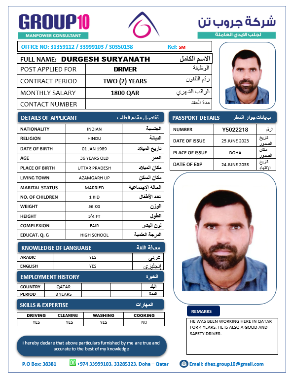 الاسم - عربي DURAGESH SURYANATH