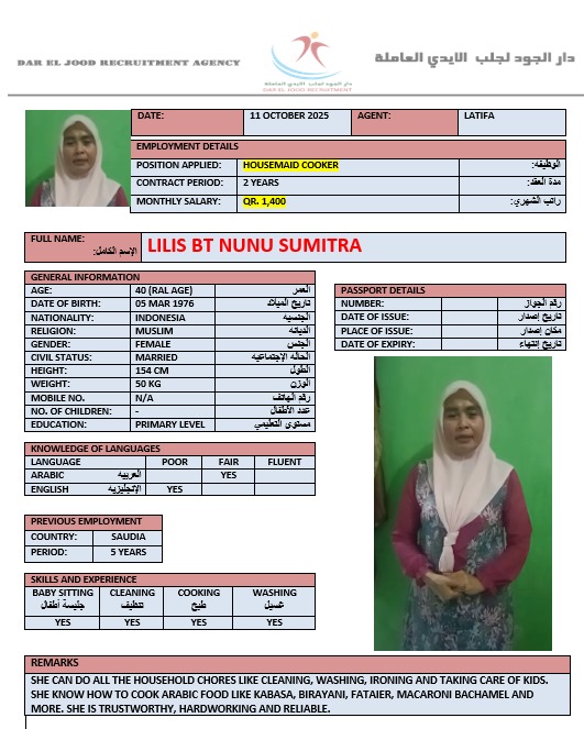الاسم - عربي LILIS BT NUNU SUMITRA