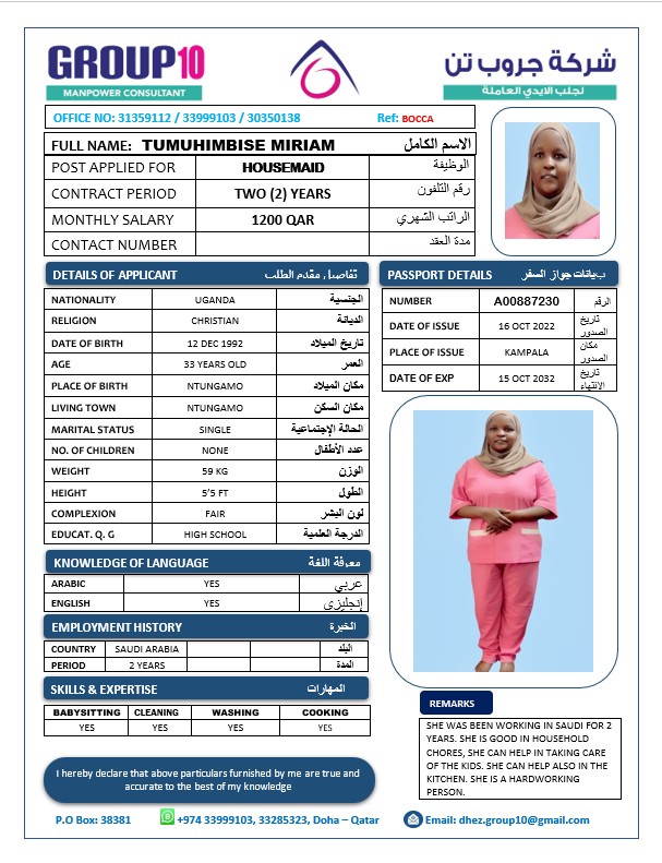 الاسم - عربي TUMUHIMBISE MIRIAM