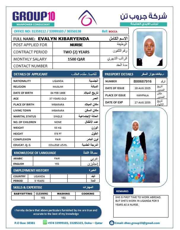 الاسم - عربي EVALYN KIBARYENDA