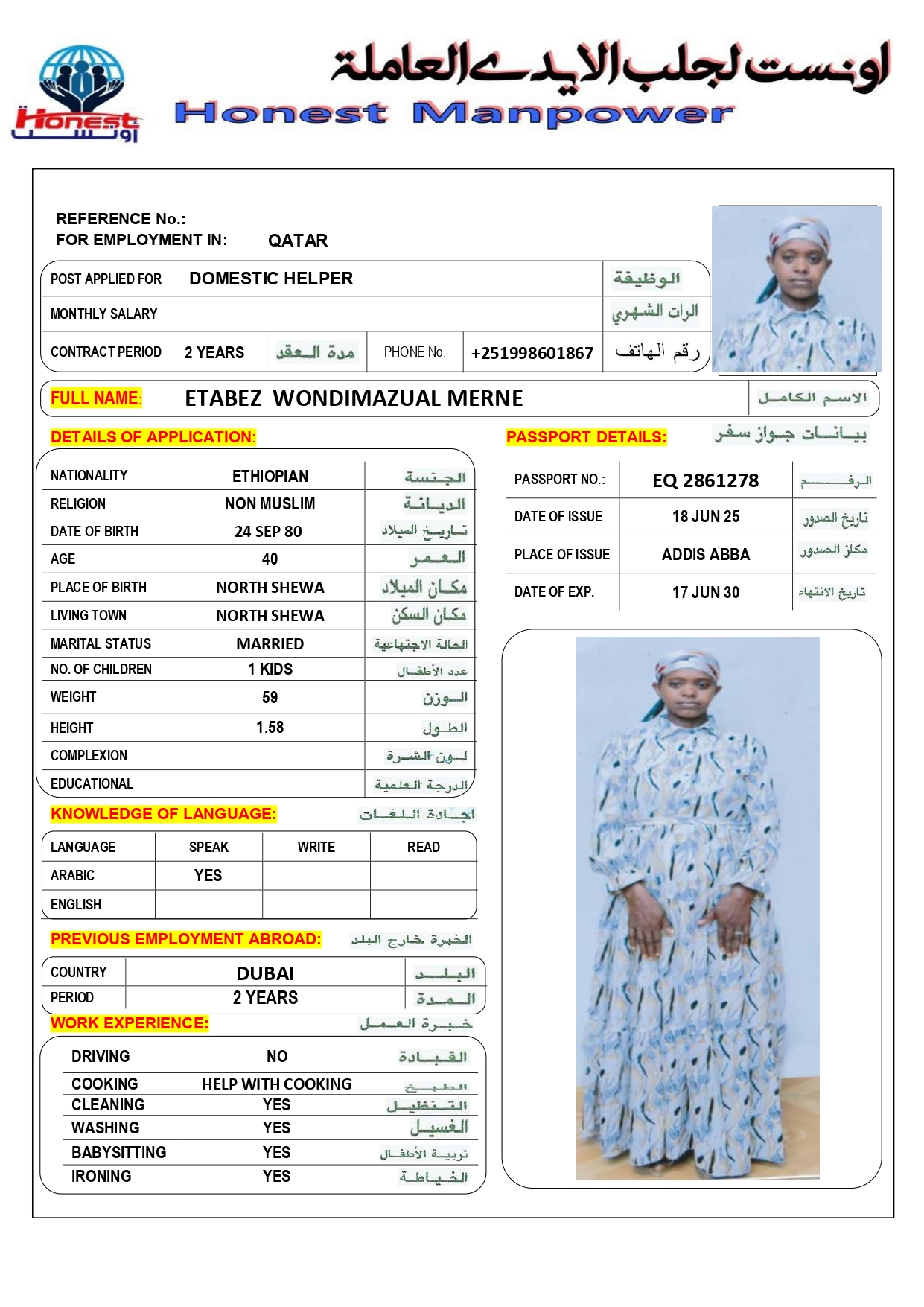 الاسم - عربي ETABEZ WONDIMAZUAL MERNE