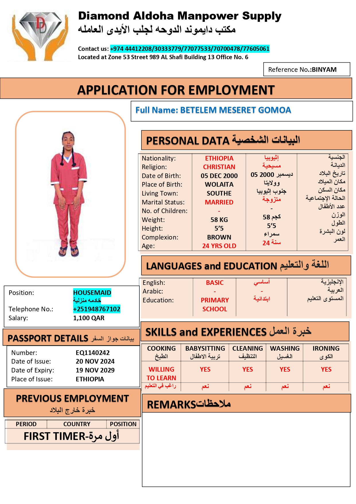 الشركة ‏ دايموند الدوحة لجلب الايدى العاملة