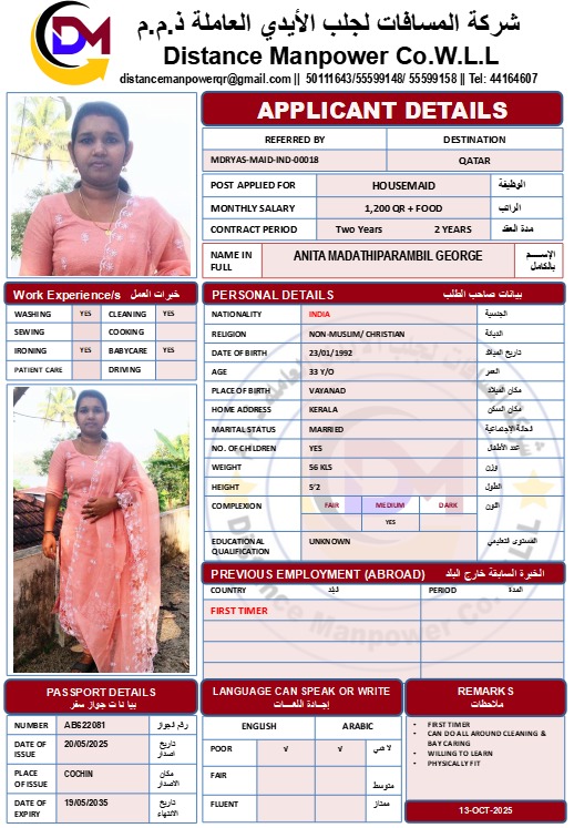 الاسم - عربي أنيتا ماداثيبارامبيل جورج