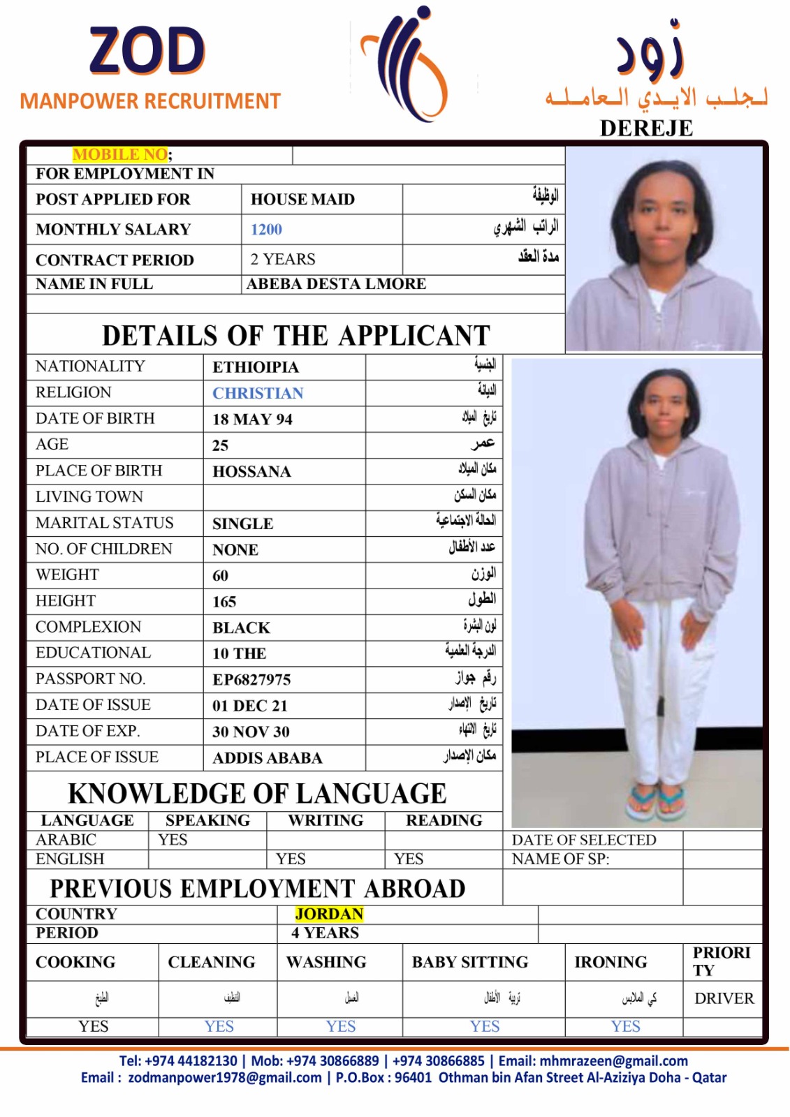 الاسم - عربي ABEBA DESTA LMORE