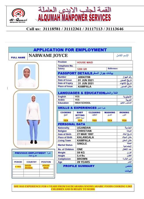خدم مبيت إذا كنت تبحث عن خادمات مبيت بعقود…