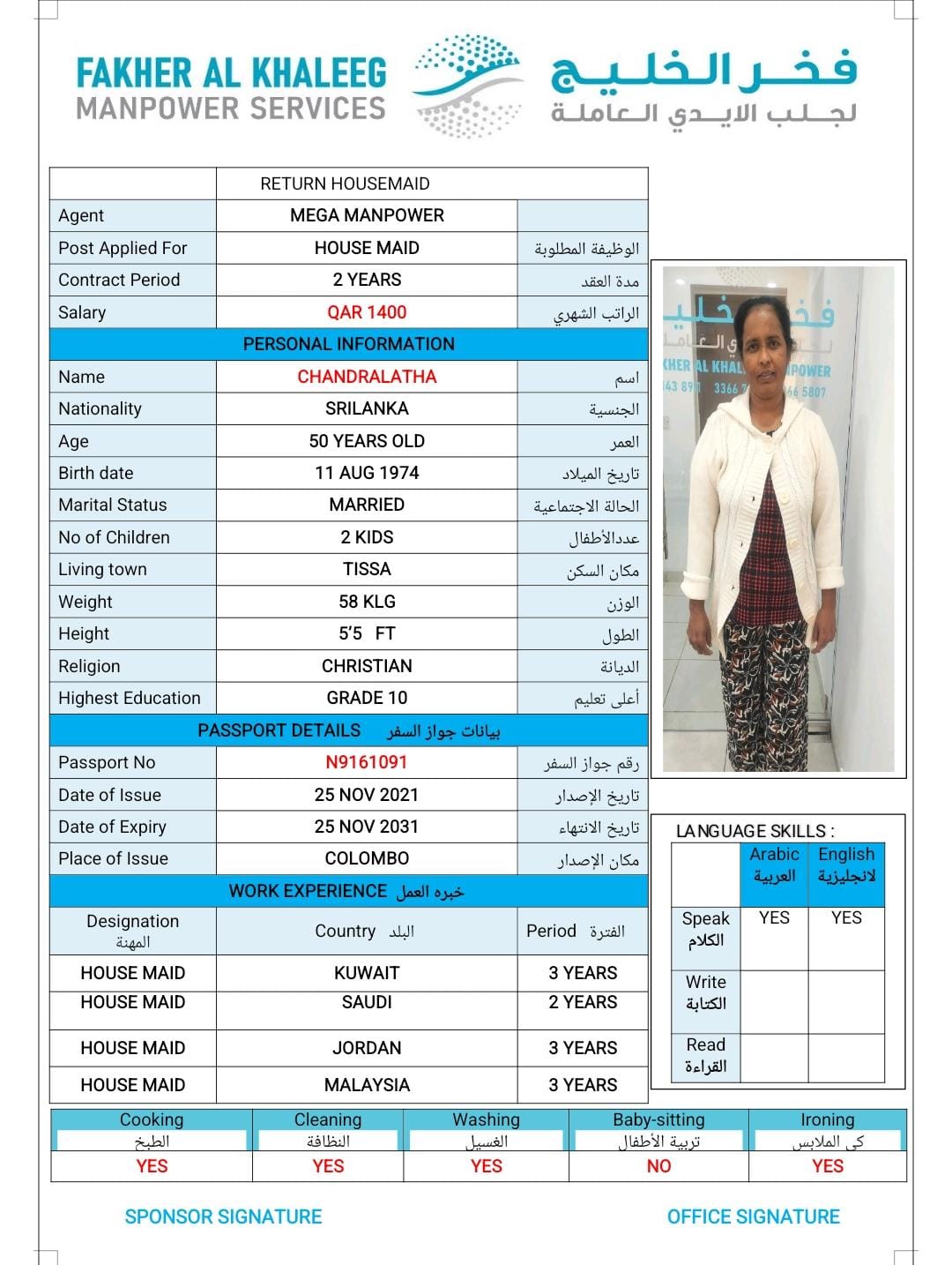 الجنسية سريلانكا