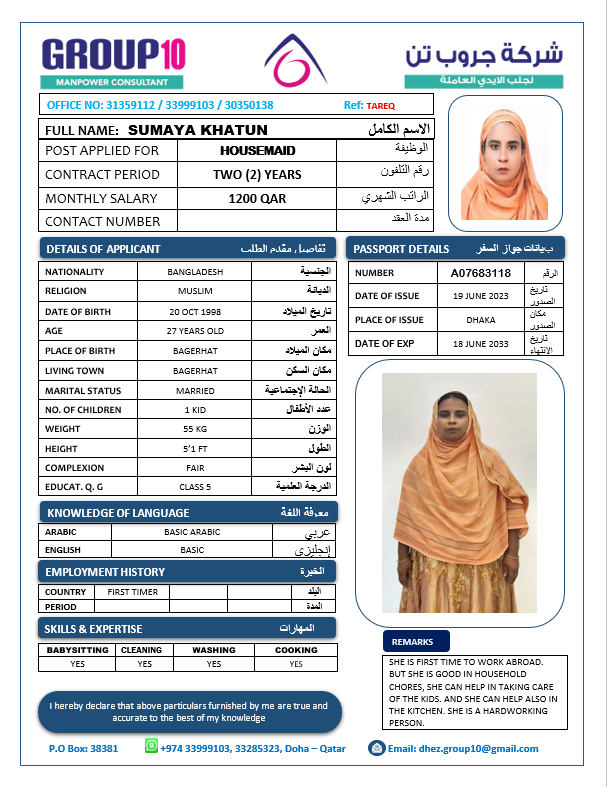 الاسم - عربي SUMAYA KHATUN