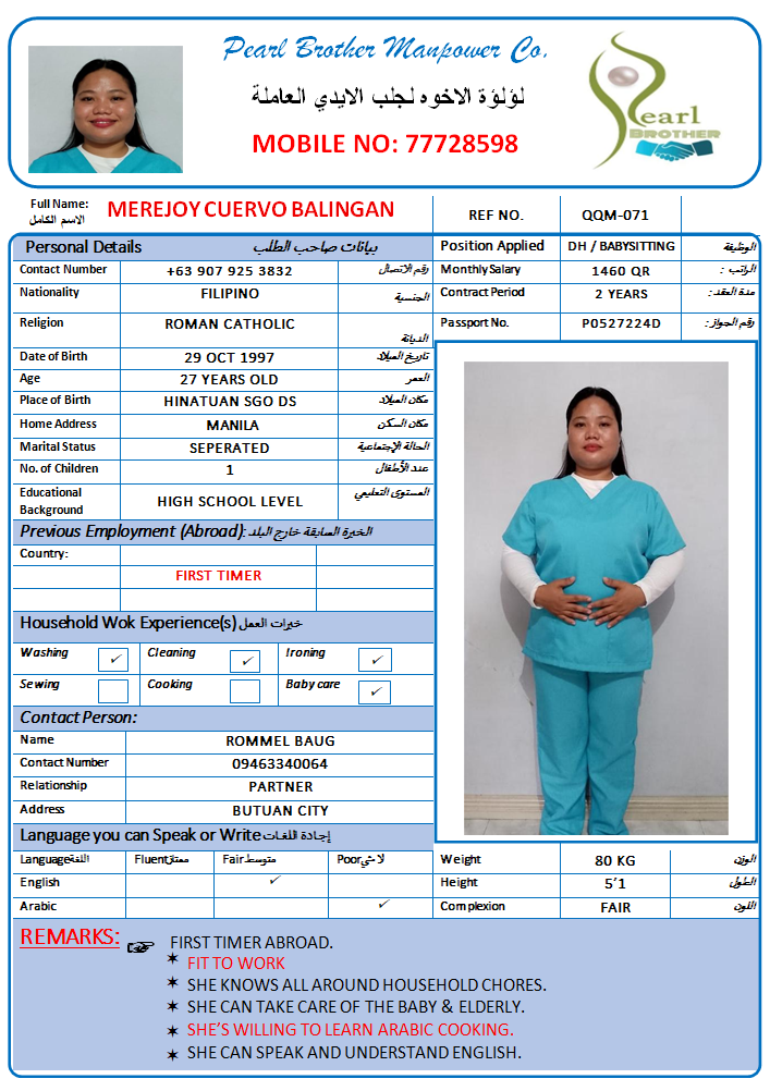 الاسم - عربي MEREJOY CUERVO BALINGAN