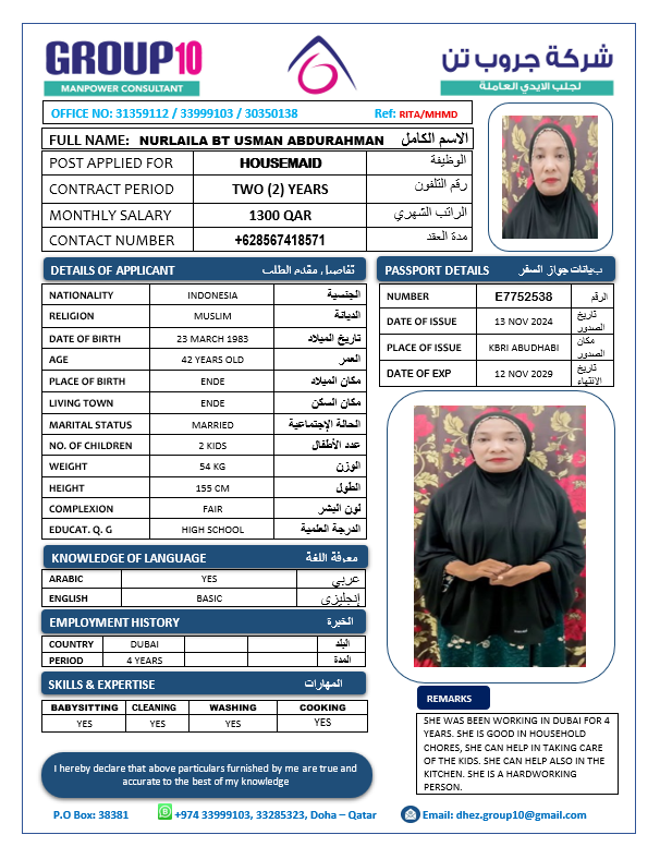 الاسم - عربي NURLAILA BT USMAN ABDURAHMAN