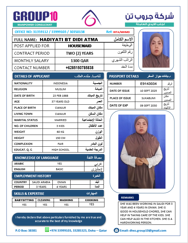 الاسم - عربي HADIYATI BT DIDI ATMA
