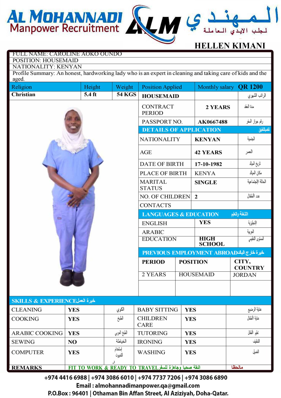 الاسم - عربي CAROLINE AOKO OUNDO
