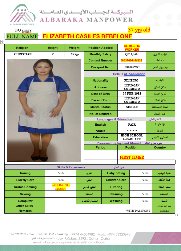 الاسم - عربي ELIZABETH CASILES BEBELONE
