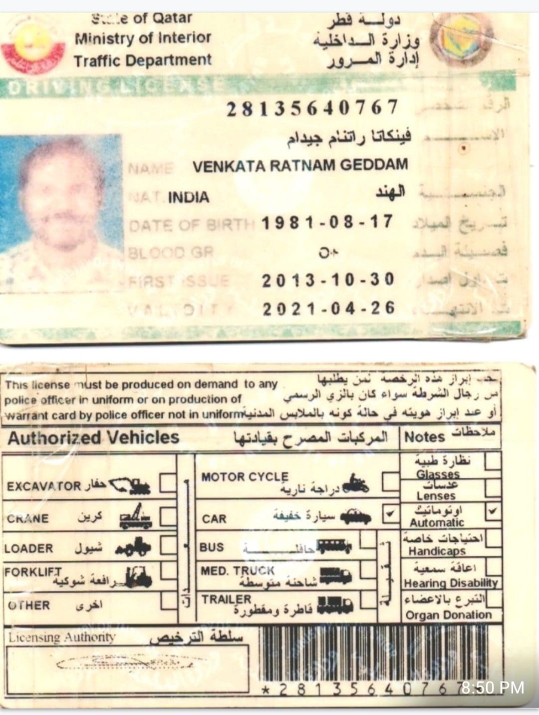 الاسم - عربي GEDDAM VENKATA RATNAM