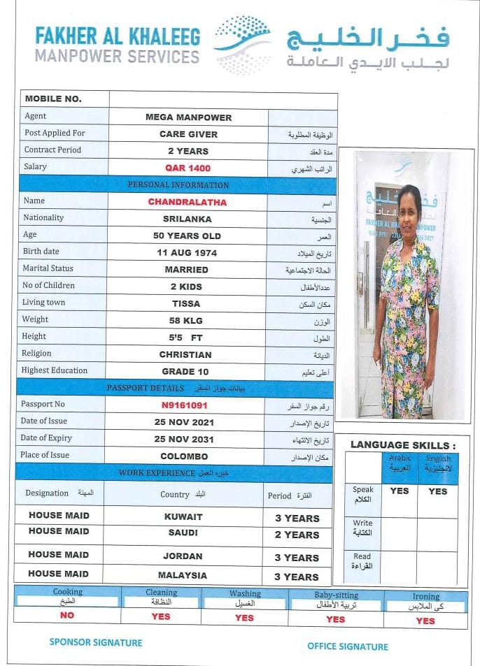الجنسية سريلانكا