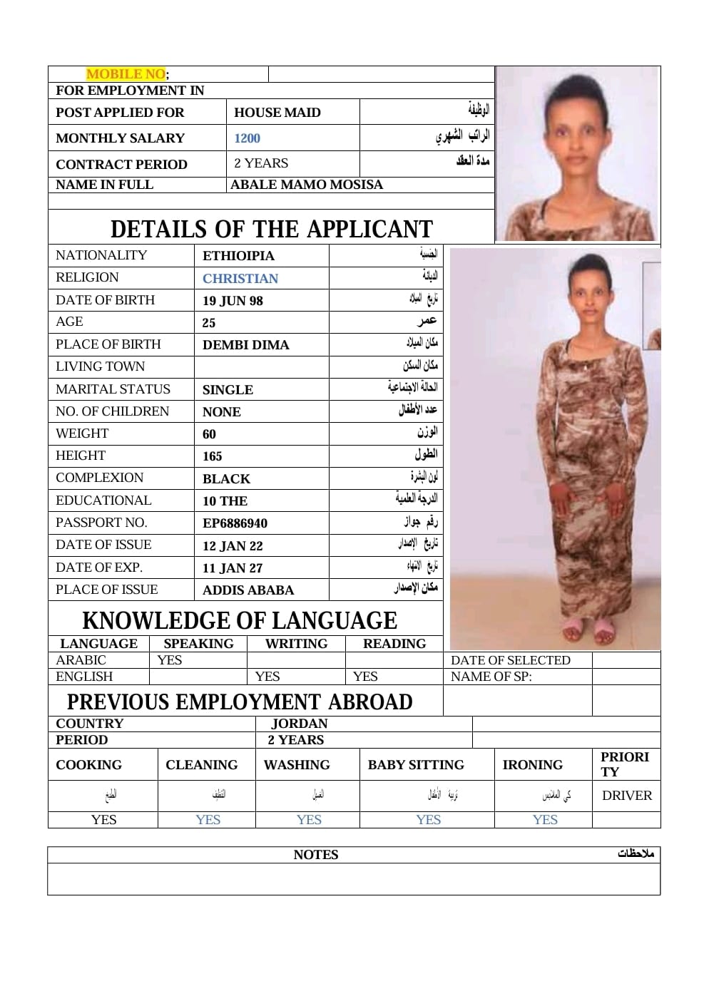 الاسم - عربي ABALE MAMO MOSISA