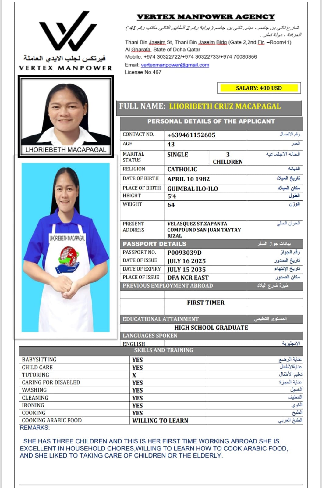 الاسم - عربي LHORIEBETH CRUZ MACAPAGAL