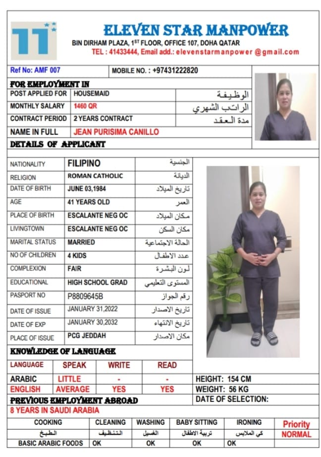 الاسم - عربي Jean Purisima Canillo (hsw-)