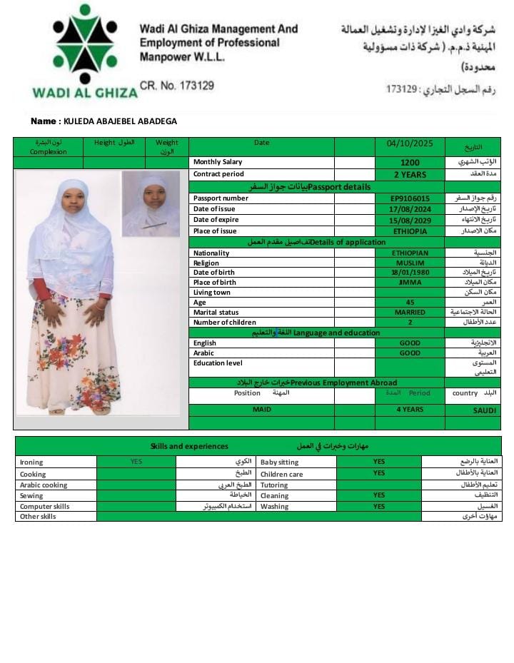 الشركة ‏ وادي الجيزة لجلب الأيدي العاملة