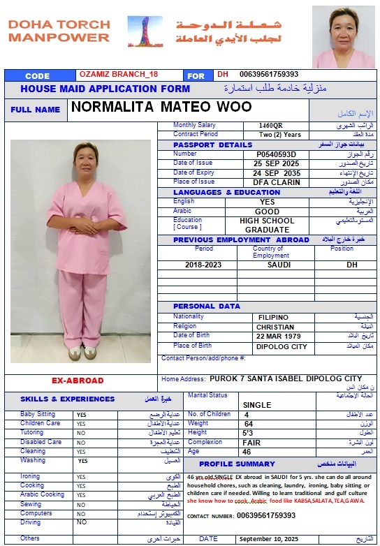 الاسم - عربي NORMALITA M WOO