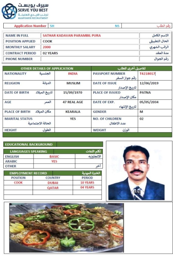 الاسم - عربي SATHAR KADAVAN PARAMBIL PURA