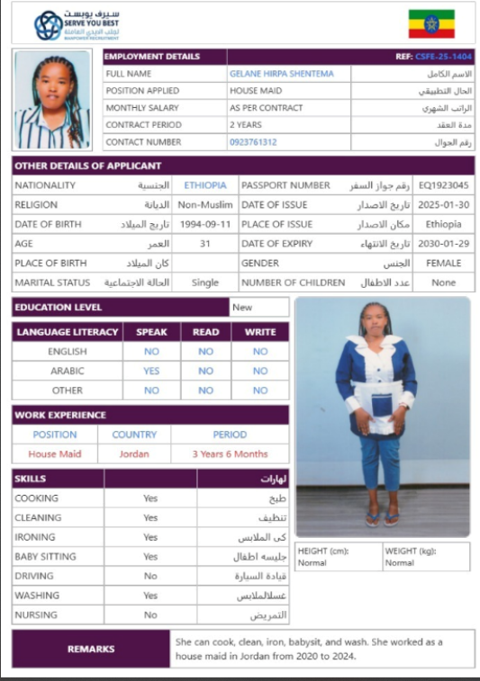 المهنة عاملة منزلية